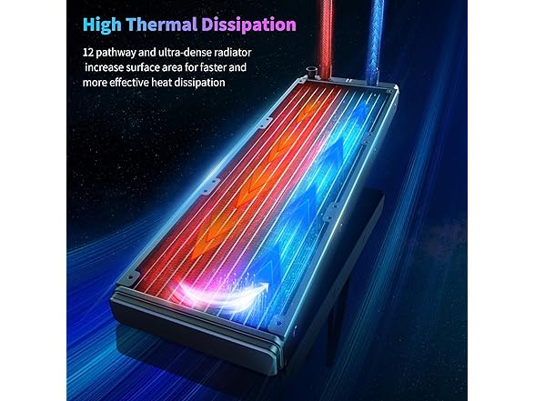 - Smart PWM Fans - Our liquid CPU cooler features 120mm fans that auto-adjust speed up to 1600 RPM for optimal airflow and low noise—ideal for gamers and creators.
