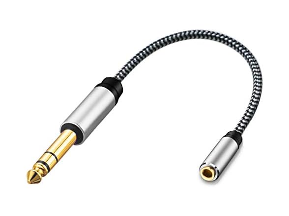 MORELECS 3.5mm to 1/4 Adapter, 6.35mm 1/4" Male to 3.5mm 1/8" Female TRS Stereo Audio Cable, Nylon Braid Compatible for Amplifiers, Guitar, Piano, Home Theater Devices