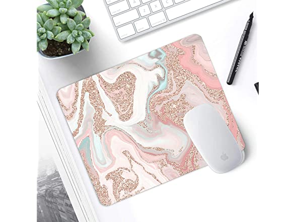 Mouse Pad, Rose Gold Glitter Coral Marble Pattern Waterproof, Non-Slip Rubber Mousepad