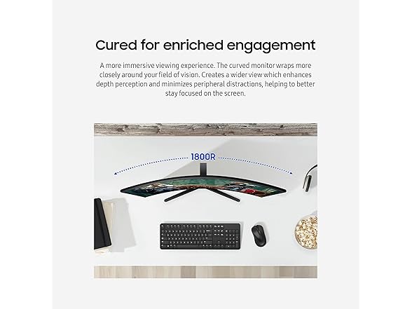 - CURVED FOR ENHANCED ENGAGEMENT: An immersive viewing experience with a curved monitor that wraps more closely around your field of vision; It creates a wider view, enhancing depth perception and minimizing peripheral distraction