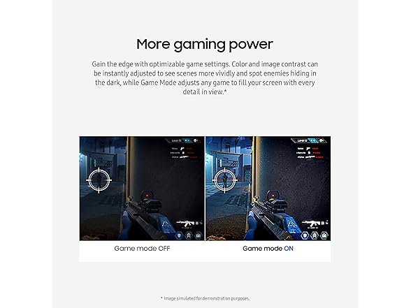 - MORE GAMING POWER: Gain the edge with optimizable game settings; Color and image contrast can be adjusted to see scenes more vividly and spot enemies hiding in the dark; Game Mode adjusts any game to fill the screen so you can view every detail²