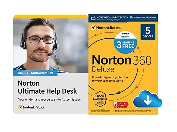 - Norton 360 Deluxe for 5 Devices 12-month subscription with 3 FREE months