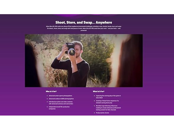 - High-performance, highest quality memory card for advanced photography and video recording at maximum camera settings