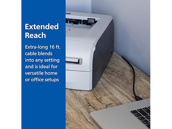 - Extended reach – The extra-long 16 ft. black cable blends well into any setting and is the ideal length for versatile home or office setups