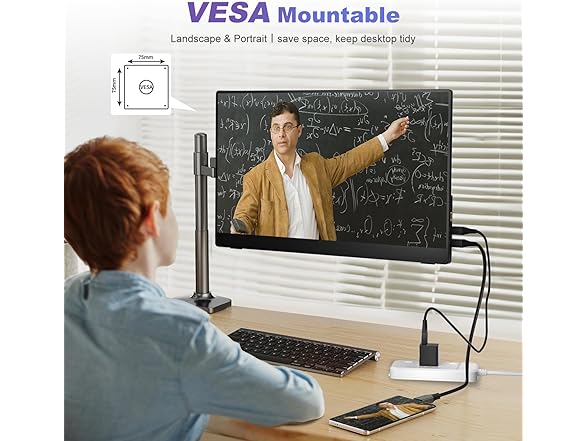18.5 Inch Portable Monitor for Laptop, FHD 1080P 100% sRGB Travel Monitors for Laptop, Portable Computer IPS Display w/VESA, External Monitor USB-C HDR HDMI Portable Screen w/Smart Cover & Speakers