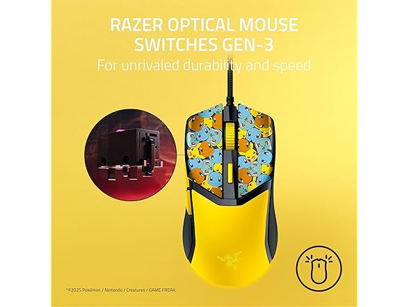 Razer Cobra Wired Gaming Mouse: 58g Lightweight - Gen-3 Optical Switches - Chroma RGB Lighting - Precise 8500 DPI Optical Sensor - 100% PTFE Mouse Feet - Speedflex Cable - Pokémon Edition