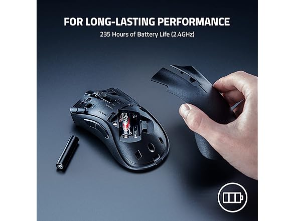 - Long Battery Life: With up to 235 hours of seamless low-latency gaming with Razer HyperSpeed Wireless (2.4GHz), and up to 615 hours with Bluetooth, the mouse can go for ages before its battery needs replacing