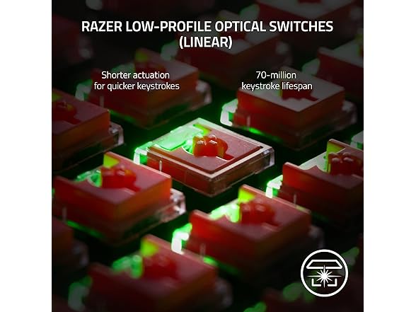 - LOW-PROFILE LINEAR OPTICAL SWITCHES — Perform quicker keystrokes with all-new switches that have a shorter actuation height for reduced key travel, backed by a 70-million keystroke lifespan for long-lasting performance
