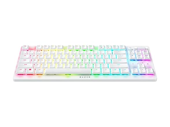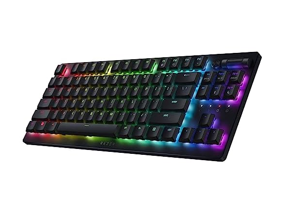 Top-tier performance and durability is more compact than ever with the Razer DeathStalker V2 Pro TKL—a wireless ultra-slim tenkeyless optical keyboard. Featuring low-profile switches and Razer HyperSpeed Wireless for ultra-responsive gaming, all housed within a compact, yet incredibly durable build.