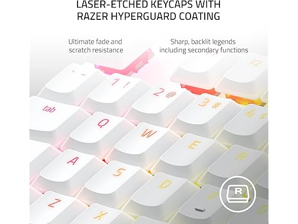 - LASER-ETCHED KEYCAPS WITH HYPERGUARD COATING — Greater protection against wear and tear compared to regular keycaps