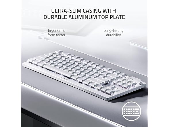 - ULTRA-SLIM CASING WITH DURABLE ALUMINUM TOP PLATE — The keyboard’s slim profile ensures neutral hand positioning for long hours of use with little strain, while its aluminum alloy top plate provides greater durability with a satisfying heft