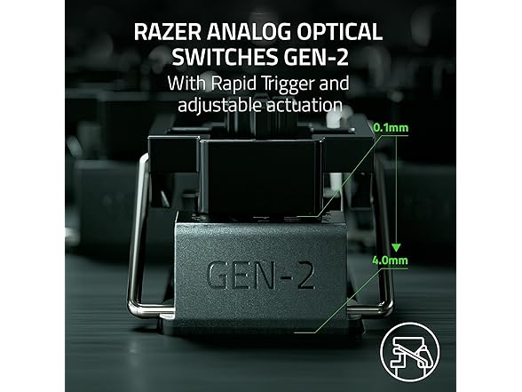 - ANALOG OPTICAL SWITCHES GEN-2 — Max out on precision and response with advanced switches for ultra fast repeated inputs, a 0.1–4.0 mm adjustable actuation range, and a 100 million keystroke lifespan