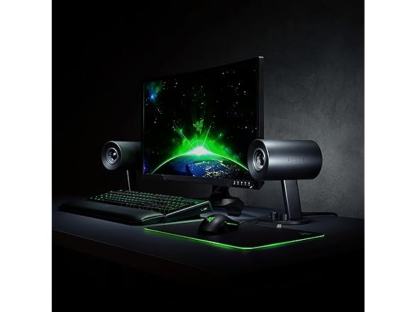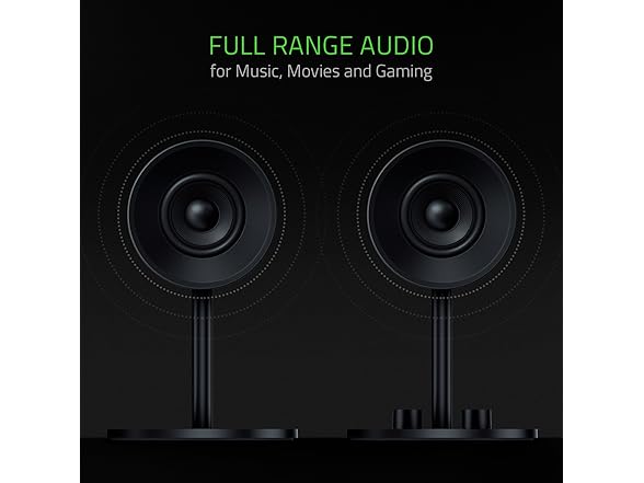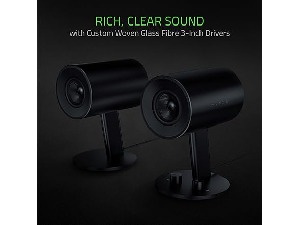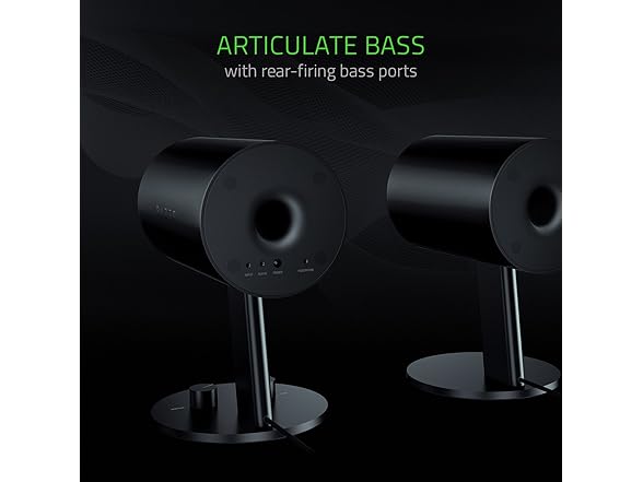Razer Nommo: Custom Woven Fiberglass 3" Drivers - Rear-Facing Bass Ports - Bass Knob w/ Automatic Gain Control - Full Range 2.0 PC Gaming Speakers
