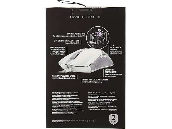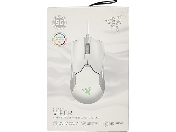 Razer Viper Ultralight Ambidextrous Wired Gaming Mouse: 2nd Generation Optical Mouse Switches 5G Optical Sensor - 71g Lightweight Design - Speedflex Cable - Mercury White