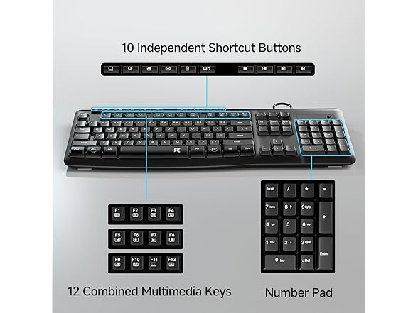 Redragon BK7366 Wired Keyboard,Multimedia USB Quiet Computer Keyboard,Silent Keyboard with Large Number Pad,Spill-Resistant,Anti-Wear Letters,Full Size for Laptop,Desktop
