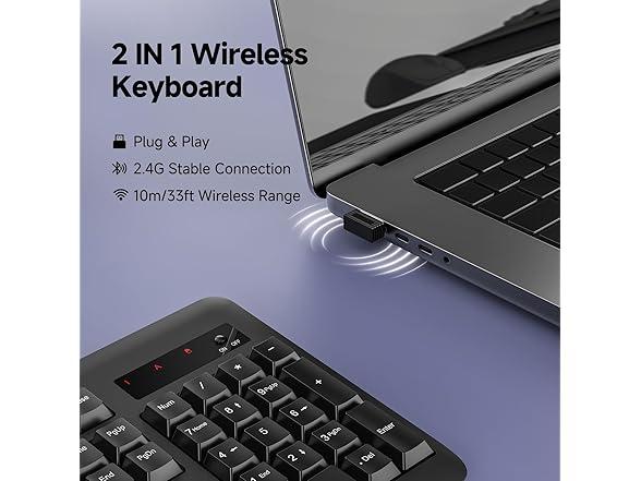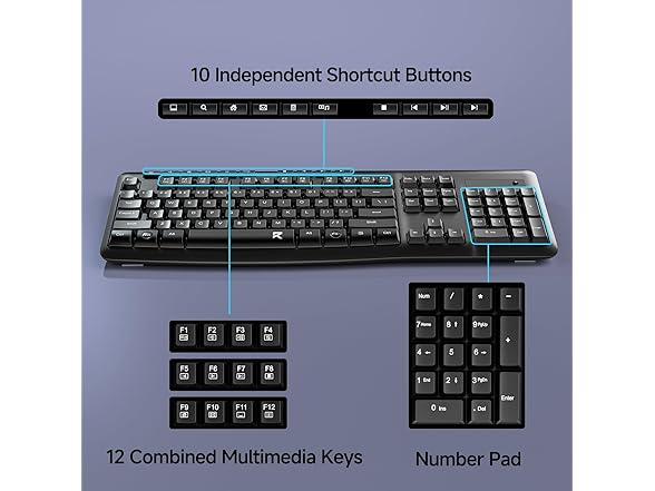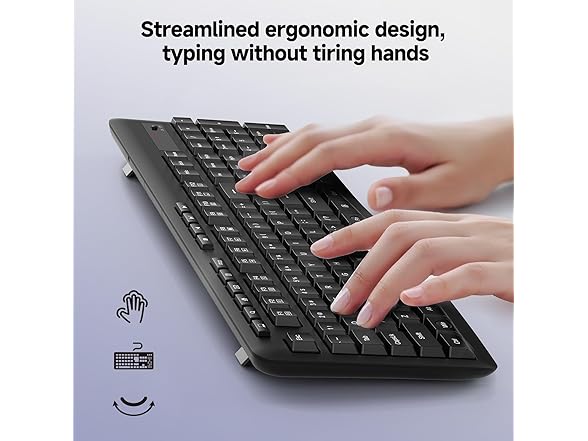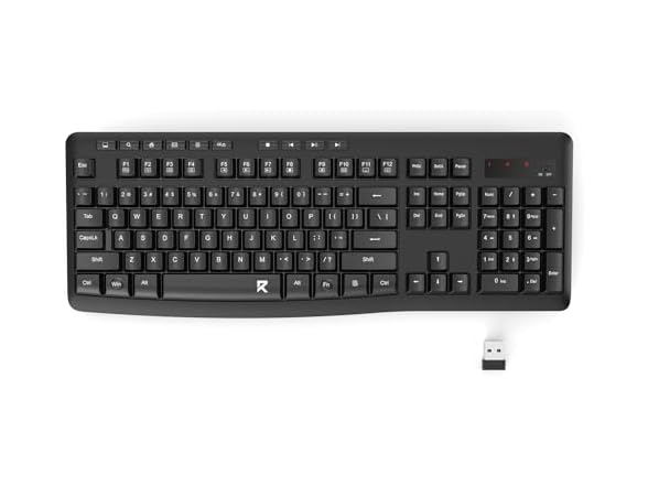 Redragon Wireless Keyboard, 2.4G Full-Sized Ergonomic Wireless Computer Keyboard with 10 Individual Multimedia Keys, Spill Resistant, for Mac OS Desktop/Laptop/PC BK7367
