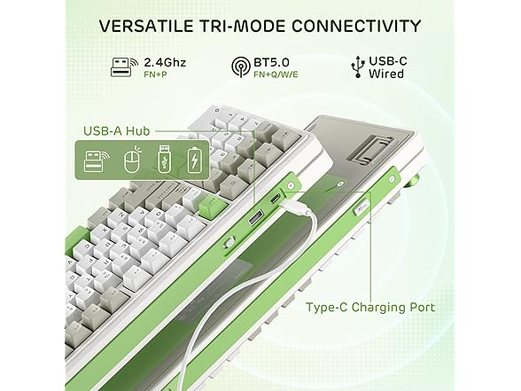 - Seamless Tri-Mode Connectivity — Switch effortlessly between 2.4GHz wireless, Bluetooth 5.0, and USB-C wired connections for ultimate versatility. The RK L98 supports multi-device connectivity and features dazzling south-facing RGB lighting for vibrant shine-through effects.