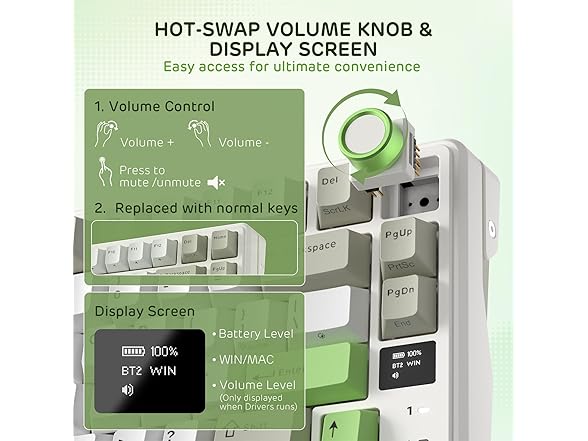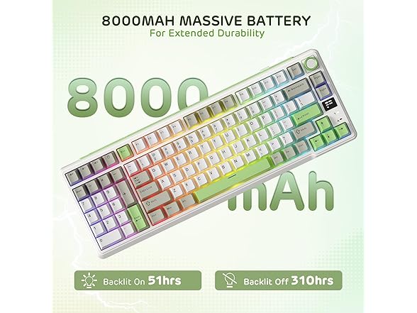 - Massive 8000 mAh Battery — Boasting a high-capacity 8000 mAh battery, this 98 keys 90% keyboard offering up to 310 hours of non-stop use with RGB backlight off and 51 hours with RGB on.