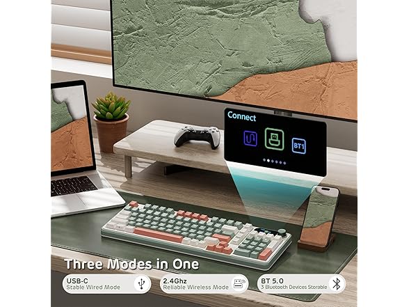 - BT5.0/2.4G/USB-C - Wireless keyboard with stable BT 5.0, hassle-free 2.4Ghz dongle plus USB-C wired mode set no limits about your keyboard connection.
