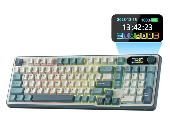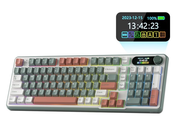 RK ROYAL KLUDGE S98 Mechanical Keyboard w/Smart Display & Knob, Top Mount 96% Wireless Mechanical Keyboard BT/2.4G/USB-C, Hot Swappable, Software Support, Creamy Sound, 98 Keys
