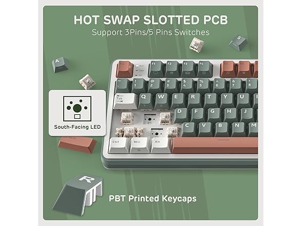 - Hot swappable mechanical keyboard - Hot-swap PCB allows you to replace 3 pins/5 pins switches freely without soldering issue. Enjoy the fun of making your own unique keyboard.