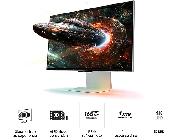 SAMSUNG 27-inch Odyssey 3D G90XF, 4K, 165Hz, Gaming Monitor, 1ms Response Time, AMD FreeSync Premium, Glasses-Free, Ergonomic Stand, LS27FG900XNXZA, 2025 Model