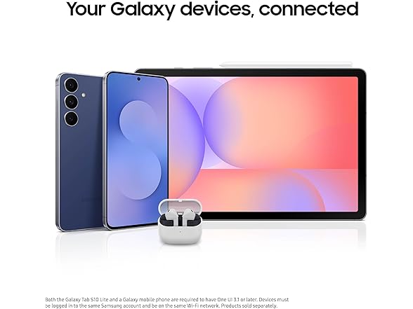 - YOUR GALAXY DEVICES, CONNECTED: All your Galaxy devices work together seamlessly. Answer a call on your Galaxy Tab S10 Lite, or finish a note you started on your laptop on your phone. It’s your Galaxy to control your way.