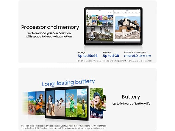 - SPACE TO KEEP WHAT MATTERS MOST: More storage means deleting less apps, photos, videos and files. Galaxy Tab S10 Lite comes with up to 256GB of storage. And if you need even more, you can add up to 2TB with a microSD card.