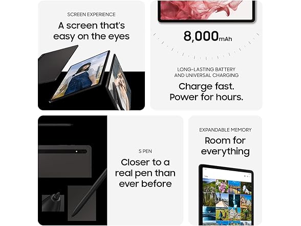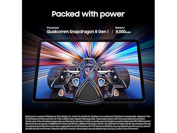 - PACKED WITH POWER: Galaxy Tab S8 provides powerful performance with an upgraded Qualcomm Snapdragon chipset, super fast WiFi 6E, and all-day battery to get you through your day, whether you’re working, streaming, or gaming