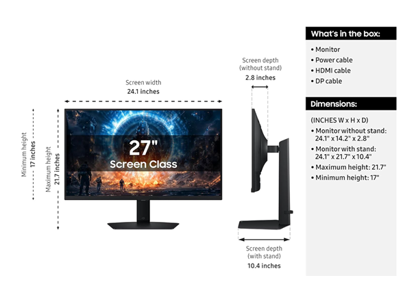 SAMSUNG 27” Odyssey G6 G60F QHD Resolution Gaming Monitor, 350Hz Refresh Rate, Fast IPS Panel, VESA DisplayHDR™ 400, NVIDIA G-Sync Compatible, AMD FreeSync™ Premium, Ergonomic Stand