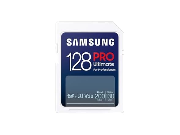 Samsung PRO Ultimate Full Size 128GB SDXC Memory Card, Up to 200 MB/s, 4K UHD, UHS-I, C10, U3, V30, A2, for DSLR, Mirrorless Cameras, PCs, MB-SY128S/AM