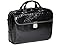 Quick, accessible front pocket with clasp features two small accessory pockets. Main compartment features a built-in padded laptop sleeve that fits and protects most laptops up to 17” in screen size. Main compartment also features a pocket for files and an interior organizer for pens, business cards and small devices. Smart Zipper Attachment allows piggy-backing on extended handles of other rolling cases & luggage. Adjustable, non-slip, shock absorbing shoulder strap alleviates body strain. Quick, accessible back pocket for files, magazines and newspapers.
