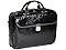 Quick, accessible front pocket with clasp features two small accessory pockets. Main compartment features a built-in padded laptop sleeve that fits and protects most laptops up to 15.6” in screen size. Main compartment also features a pocket for files and an interior organizer for pens, business cards and small devices. Smart Zipper Attachment allows piggy-backing on extended handles of other rolling cases & luggage. Adjustable, non-slip, shock absorbing shoulder strap alleviates body strain. Quick, accessible back pocket for files, magazines and newspapers.