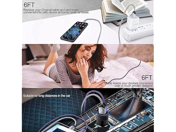 - What You Get --3Pack (6FT+6FT+6FT)-- this three-pack to have backup power cable stashed one in each room, office, car, power bank, several cell phones and perfect for travel, share to families, enjoy freedom convenient and simple charging at anywhere
