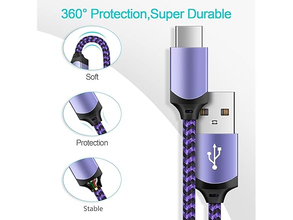 - Ultra-Durable Nylon Braided Type C Power Cord --With its braided nylon insulation and precisely layer-welded connectors have excellent anti-twisting and abrasion-proof properties, but more flexible and tangle-free, also more durable than standard mobile phone charger cables can withstand at least 10000 cycles of 90-degree bend test