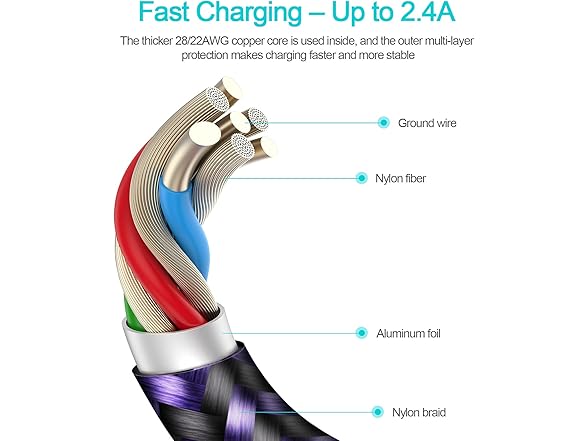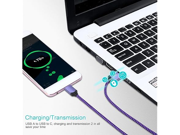 - Fast Charging and Data Sync -- 3A Fast Charge, transfer speed can reach 480Mbps(Max), type c charging cable accelerates the charging speed by delivering 5V/2.4A safe charging power, 【25% faster】compared with other cables which provide 5V/2.4A output, as original USB 2.0&3.0 charging cables support quick charger for type c charger port