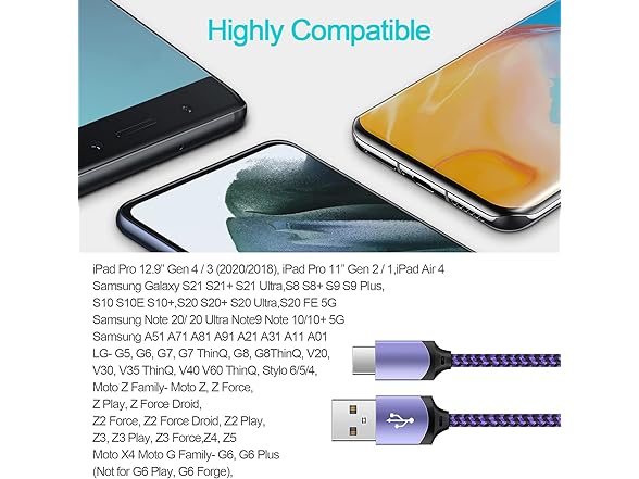 - C Charger Cable Fast Charging Works for Samsung Galaxy S24/ S24 Ultra/S24+/S23/ S23 Ultra/S23+/S22/ S22 Ultra/S22+/Note S21 Ultra/S20 FE/S21 Plugs/S21/S21+, Samsung Galaxy S20/Note 20/Note 20 Ultra, Samsung Galaxy S10/S10E, Samsung Galaxy A15/A51/A50/A71/A90/A20, Moto edge s edge+ G50 Razr G 5G Plus Z3 Z2 Play P30 Play G7 Plus One Hyper X4 P30 G7 Plus P50 M, LG G7 Thing G8 G6 G5 V60 V50, Google Pixel 9 8 7 6 5 4 3 4 XL 3 XL 4a3a 3a XL and more Type C port devices.