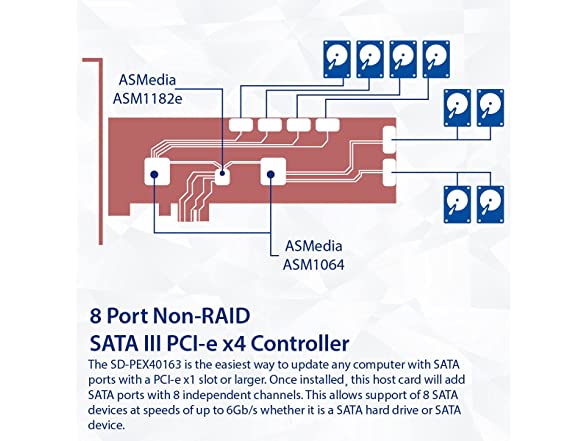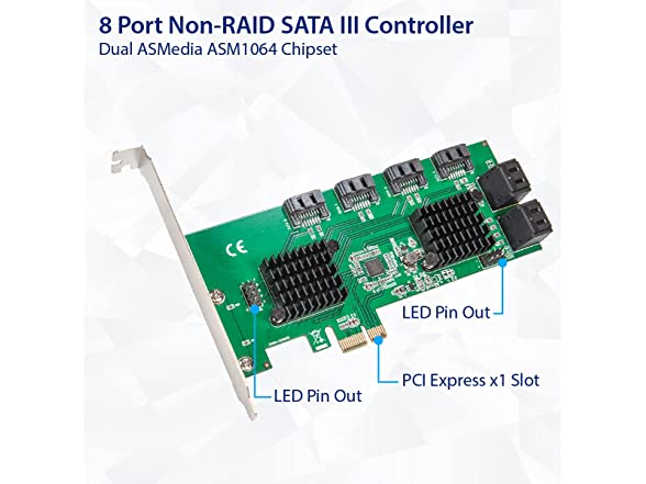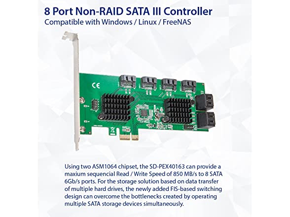 Syba 8 Port SATA III to PCIe 3.0 x1 Non-RAID Expansion Card Dual ASM1064 Low Profile Bracket,SD-PEX40163