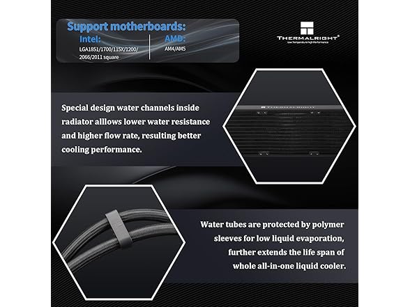 - [Wide Compatibility] CPU liquid cooler support Intel: LGA 1150/1151/1155/1156/1200/1700/2011/2066;AMD: AM4/AM5,with dual-platform all-metal fasteners, easy to install, it is recommended to install it in conjunction with the installation video or manual. (Note: The installation of the AMD platform requires the installation of the original backplate of the motherboard, which is not included with the product.)
