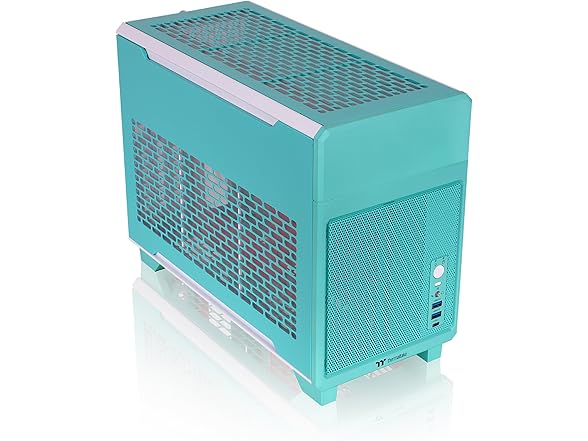 Thermaltake TR100 SFF Chassis; mITX Support; 18.9 Liters; PCIe 4.0 Riser Cable Included; 360mm GPU Clearance; 280mm Radiator Support; Removable PCIe Bracket; Mint Strawberry; CA-11A-00SLNN-00