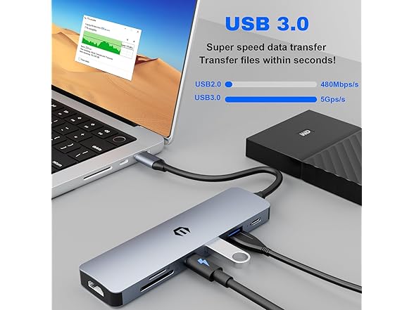 - 【Super Speed Data Transfer】:The USB hub with three USB 3.0 ports, supports up to 5Gbps transmission speed and 5V/1.5A charging, which is 10 times faster than USB 2.0, an HD film can be transferred within seconds.