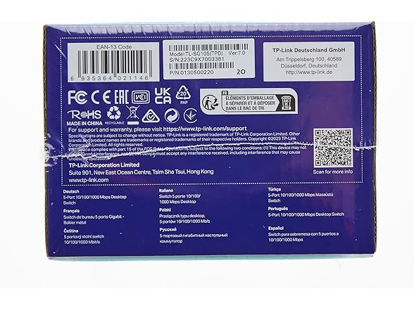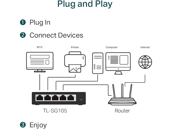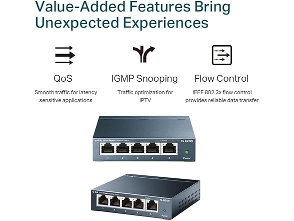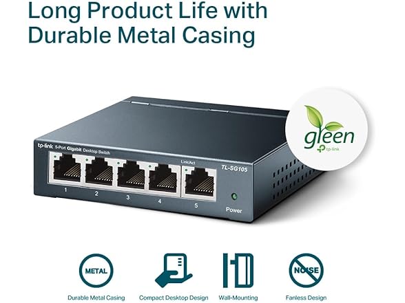 TP-Link TL-SG105, 5 Port Gigabit Unmanaged Ethernet Switch, Network Hub, Ethernet Splitter, Plug & Play, Fanless Metal Design, Shielded Ports, Traffic Optimization,Navy Blue
