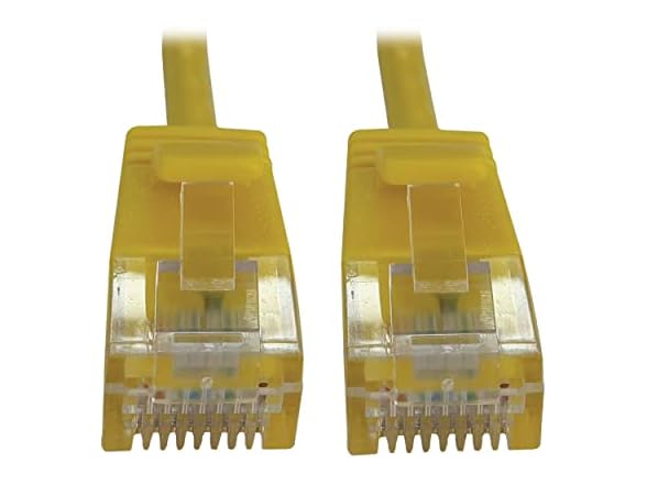 - 6 INCHES: Distribute data, voice and video at higher speeds and quality with Tripp Lite’s Category 6a 10G Ethernet snagless molded patch cable, over 38% slimmer than standard Cat6a cables to increase airflow in full racks. Ideal solution for connecting printers, computers, copiers, routers, servers, modems, hubs and switches in high-density data centers. Length: 6 in. / Color: Yellow / Connectors: RJ45 Male