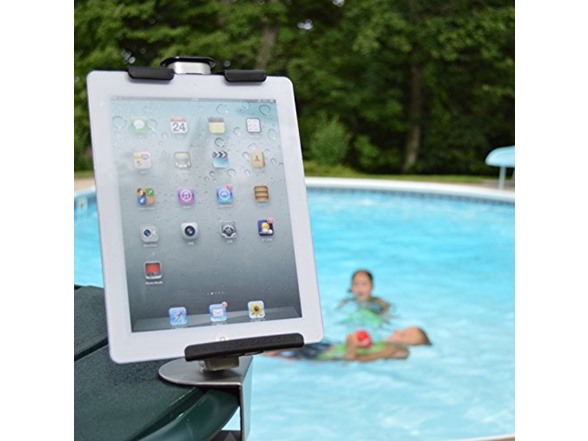 Upper Desk's Portable Table Mount Desk Mount Tablet iPad Holder Stand, fits all makes and models of tablet p.c.s and smart phones ranging from 4-14 inches. Protecting your tablet P.C. from spills, it boasts an adjustable and rotating arm with three angled settings to optimize tablet use. Using the Easy Latch System-a quick clamp mechanism-the mounts installs on surfaces up to 2 1/2 inches thick in seconds. It does not require tools or the need to drill or permanently mar mounting surfaces with sticky adhesive like other products. Its durable high-quality construction provides unmatched sturdiness and stability. From the home, kitchen, garage, dorm or office, Upper Desk places technology where you need it.