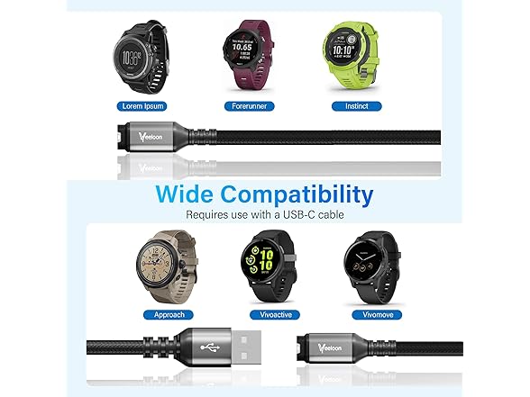【Faster and Safer Charging】Using this high-quality charging cable, you can quickly charge your devices (we have tested dozens of different Garmin watches, and it takes about 1.5 hours to charge from 0 to full). It features a built-in smart chip with over-voltage and over-current protection to ensure stable current delivery and the safety of your devices.