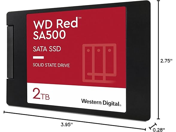 Western Digital 2TB WD Red SA500 NAS 3D NAND Internal SSD - SATA III 6 Gb/s, 2.5"/7mm, Up to 560 MB/s - WDS200T1R0A