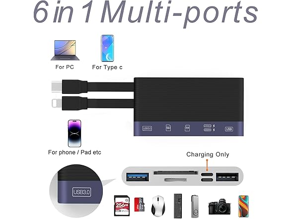 ZOIOT 6in1 Multi-Ports Memory Card Reader