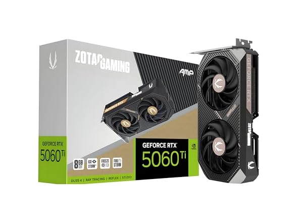 ZOTAC Gaming GeForce RTX 5060 Ti 8GB AMP DLSS 4 8GB GDDR7 128-bit 28 Gbps PCIE 5.0 Gaming Graphics Card, IceStorm 2.0 Cooling, White LED Lighting, ZT-B50610F-10M